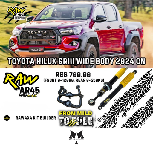 View full detailsRaw4x4 | Toyota Hilux GRIII Wide Body 2024+ Suspension Upgrade