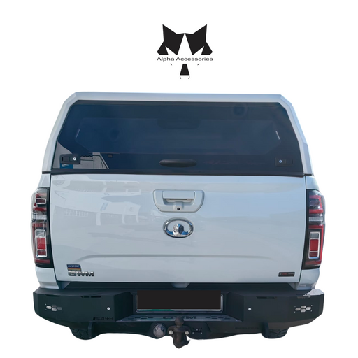 GWM P-Series Rear Bumper ReplacementFits 2021+ Bumper Specifications: 3mm mild steelStainless steel step plate8mm brackets16mm recovery points Grav...