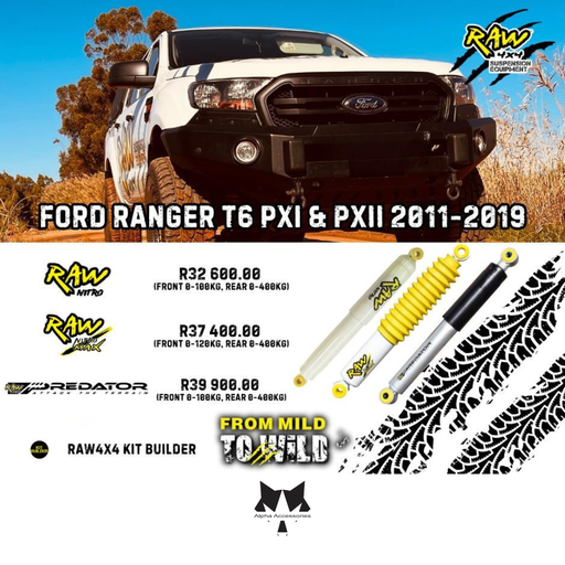 View full detailsRaw4x4 | Ford Ranger T6 PXI & PXII 2011 - 2019 Suspension Upgrade