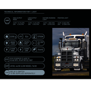 | LED Configuration | 52 LEDs with projector spot & wide-beam clusters |