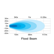 π Flood beam pattern β engineered for broad, even close-range lighting β perfect for reversing, work zones, campsite lighting, side illumination, and general auxiliary use.